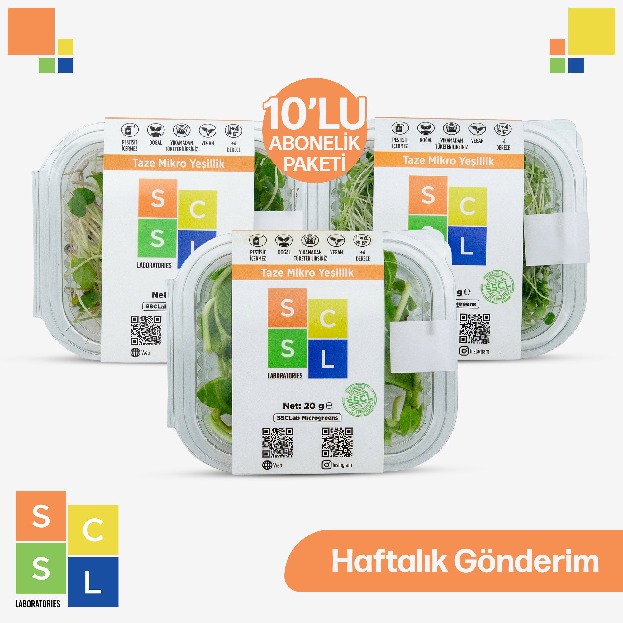 Mikro Yeşillikler; soğukta, nem kontrolü sağlanmış bir kap içerisinde yine Mikro Yeşilliğin türüne bağlı olarak 10 gün dayanabilir. Ancak SSC Laboraties olarak biz tüm siparişleriniz için özel üretim yapıyor ve en taze haliyle kapınıza kadar getiriyoruz.
