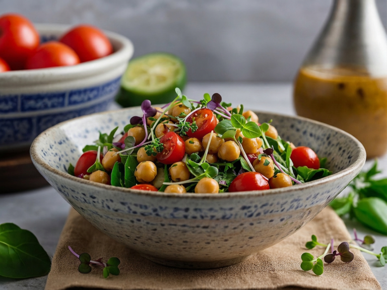 Mikro Yeşillikli Nohutlu Akdeniz Salatası